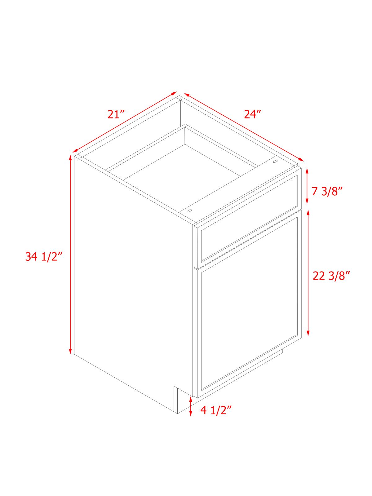 Natural Box Oak Slim - 21"W Standard Base Cabinet 1-Door 1-Drawer 1-Adjustable Shelf