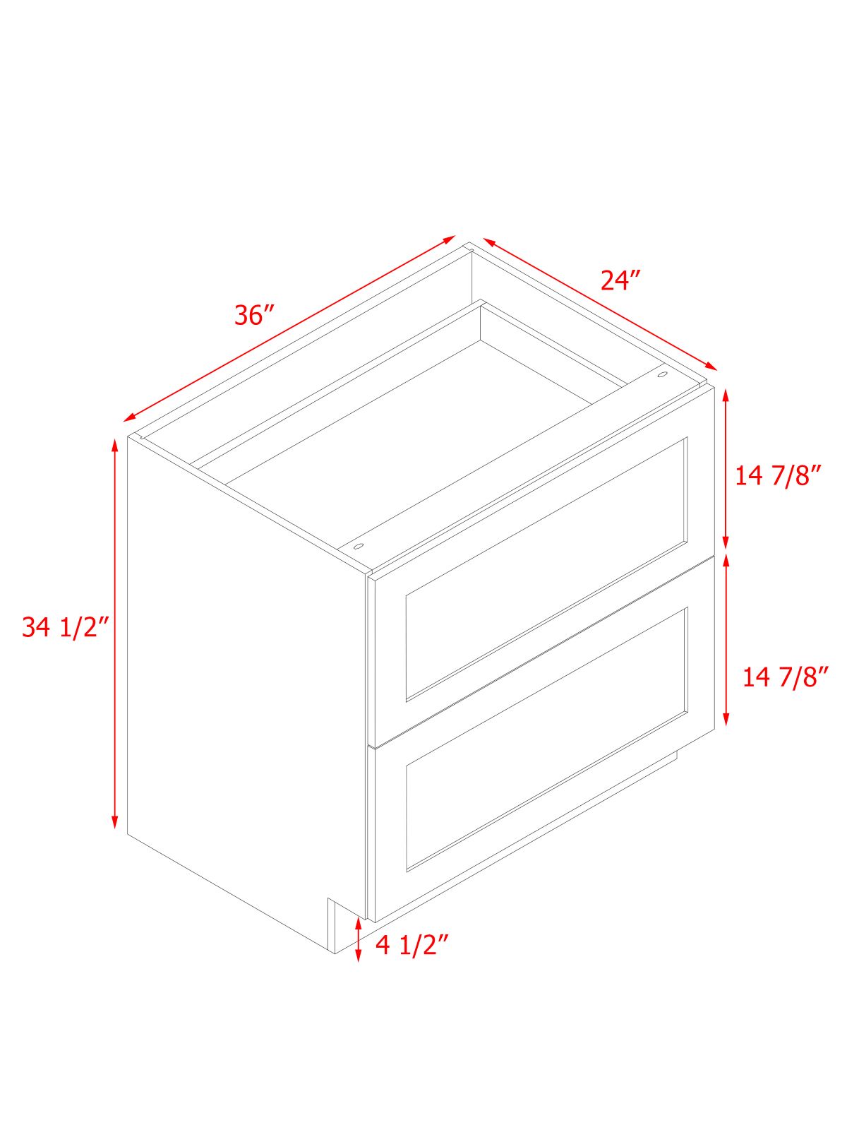 White Box Gray Shaker - 36"W Drawer Base Cabinet 2-Drawers