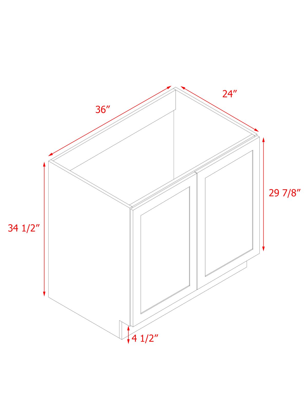 White Box Gray Shaker - 36"W Full-Height Door Base Cabinet 2-Doors
