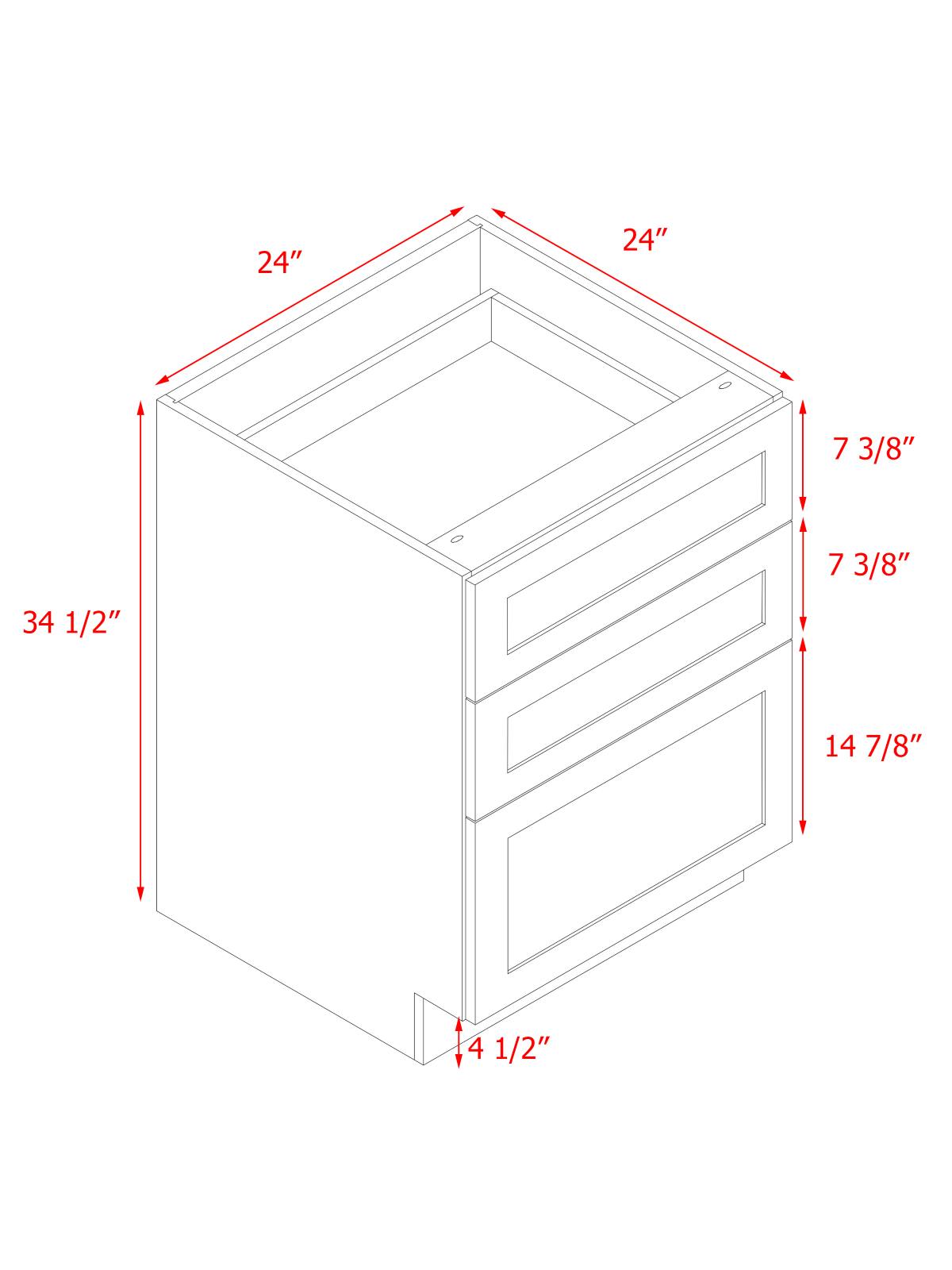 White Shaker - 24"W Drawer Base Cabinet 3-Drawers