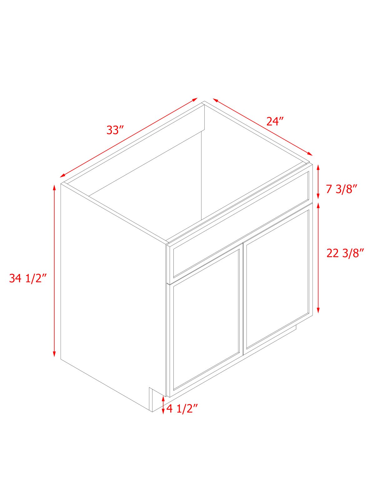 Natural Box Oak Slim - 33"W Standard Base Cabinet 2-Doors 1-Drawer